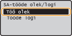Valige <Töö olek> ja vajutage klahvi