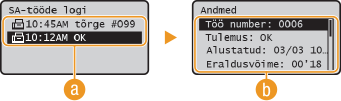 Valige <Tööde logi> ja vajutage klahvi