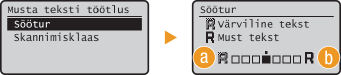 Kui skannite värvilisi dokumente, siis saate reguleerida musta või musta tooniga teksti värvi, et see sobiks paremini lähtedokumendiga, või saate reguleerida musta teksti selgust, et seda oleks lihtsam lugeda. Saate sööturi ja skannimisklaasi jaoks määrata väärtused eraldi.