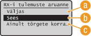 Saate printida vastuvõetud faksi andmete kontrollimise aruande. Aruande saab printida kas iga kord pärast faksi vastuvõtmist või ainult saatmistõrgete korral.