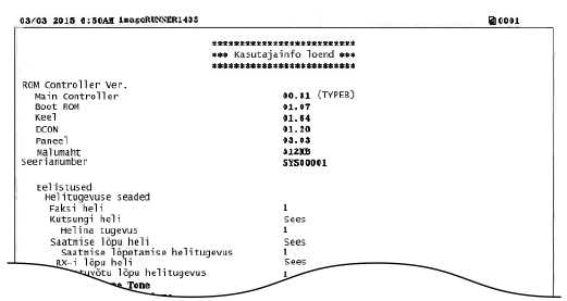 See nimekiri ei sisalda seadete andmeid seadete <Võrguseaded> ja <Süsteemihalduse seaded> kohta. Kõikide seadete üksuste kontrollimiseks printige süsteemihalduri andmete loend.