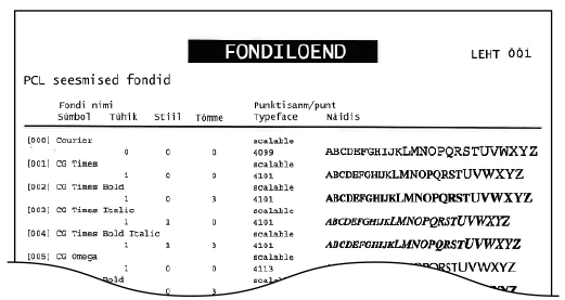 Saate printida loendi PCL-režiimis võimalike fontide kontrollimiseks.