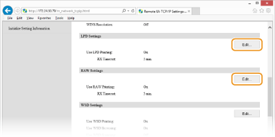 Klõpsake klahvi [Edit...] valikus [LPD Settings] või [RAW Settings].
