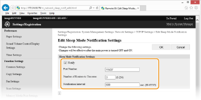 Klõpsake nuppu [Edit...] valikus [Sleep Mode Notification Settings].