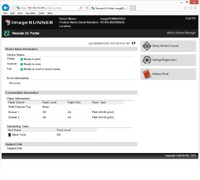 Seadme kaugjuhtimiseks peate sisestama seadme IP-aadressi veebibrauserisse ja käivitama Remote UI (Kaugkasutajaliidese). Kontrollige kõigepealt seadmele määratud IP-aadressi (