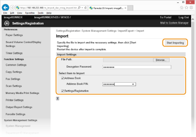 Määrake importimise seaded ja klõpsake nuppu [Start Importing].