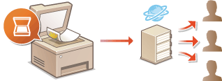 Skannitud dokumendid saate teisendada PDF-, TIFF- või JPEG-failideks ja saata need otse seadmest meilisõnumi manustena. Kuna selle funktsiooni kasutamisel pole teil vaja arvutit skannitud dokumentide saatmiseks sisse lülitada, aitab see teil tõhusamalt töötada. Enne selle funktsiooni kasutamist peate tegema mõned toimingud, nt määrama meiliserveri seaded. Lisainformatsiooni saamiseks vt.
