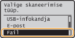 Dokumentidele failiserverites saadaolevad sihtkohad on piiratud aadressiraamatus registreeritud sihtkohtadega. Kui aadressiraamatus pole sihtkohti registreeritud, registreerige need enne failiserverisse skannimist.