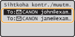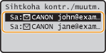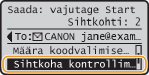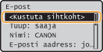 Kui soovite sihtkohad sihtkohaloendi kuvamiseta lihtsalt ja kiirelt kustutadaEnne seade <Sihtkoha kontrollimine/muutmine> valimist 1. juhises võite määratud sihtkohtade vahetamiseks vajutada klahvi