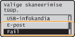 abil <E-post> või <Fail> ja vajutage klahvi