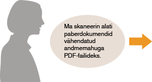 . Kui salvestate sagedasti kasutatavad seaded vaikeseadetena, siis ei pea te igal dokumentide skannimisel samu seadeid uuesti konfigureerima. Lisaks saate salvestada määratud sihtkohtade ja mitme skannimisseade kombinatsioone ning kasutada neid vastavalt vajadusele.|