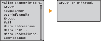 Ruudu [Scan] märkimise korral on dokumentide skannimine USB-mäluseadmesse, e-kirjana saatmiseks ja failiserverisse salvestamiseks keelatud. Samuti saate keelata dokumentide skannimise arvutisse funktsioonide <Arvuti> ja <Kaugskanner> kaudu. Dokumentide skannimise arvutisse saate siiski keelata ainult kõikide osakonna ID-de jaoks. (Tööde blokeerimine, kui osakonna ID pole teada).