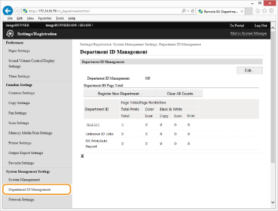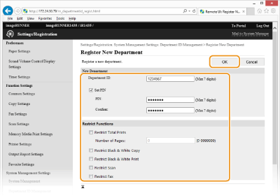 Klõpsake [Register New Department...].