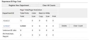 [Department ID Page Total]Saate kontrollida iga osakonna ID-ga paljundatud, prinditud, skannitud ja faksitud lehtede koguarve.