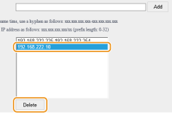 Valige IP-aadress ja klõpsake nuppu [Delete]. ![]() |