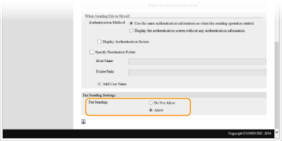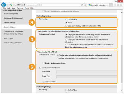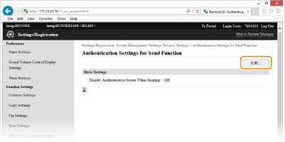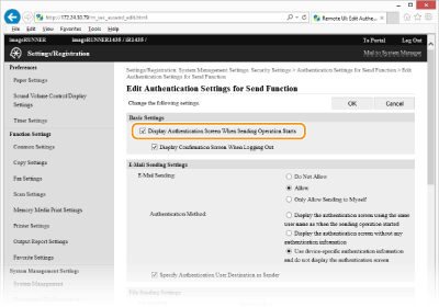 [Authentication Settings for Send Function].
