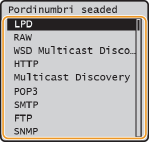 Pordid toimivad muude seadmetega toimuva andmeside liidestena. Tavaliselt kasutatakse oluliste protokollide korral tavapäraseid pordinumbreid, kuid neid pordinumbreid kasutavad seadmed on rünnakute suhtes haavatavad, sest need pordinumbrid on hästi teada. Turvalisuse suurendamiseks võib teie võrguadministraator pordinumbreid muuta. Kui pordinumber on muudetud, tuleb uus number anda andmesideseadmetele (nt arvutid ja serverid) ühiskasutusse. Määrake pordinumbri seaded vastavalt võrgukeskkonnale.