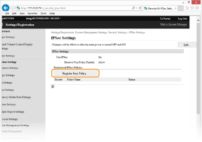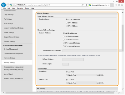 Valige, et määrata üks IPv4-aadress või IPv4-aadresside vahemik, mille korral rakendatakse IPSec-protokolli. Sisestage IPv4-aadress (või vahemik) tekstiväljale [Addresses to Set Manually:].