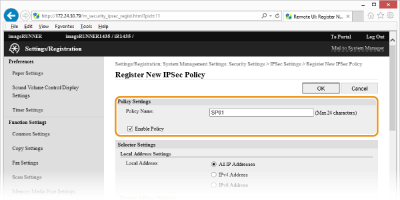 Sisestage tekstiväljale [Policy Name] kuni 24 tähe- ja/või numbrimärgist koosnev nimi, mida kasutatakse reegli tuvastamiseks.