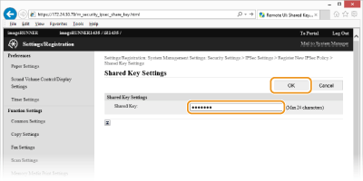 Sisestage kuni 24 tähe- ja/või numbrimärgist koosnev eelnevalt jaotatud võti ja seejärel klõpsake nuppu [OK].