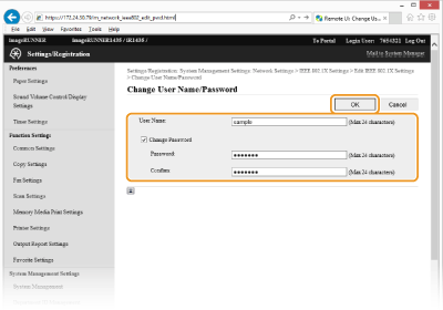 Määrake kasutajanimi ja parool ning klõpsake nuppu [OK].
