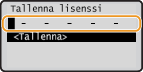 http://www.canon.com/lms/license) ja noudata toimintaohjetta. Osana toimintaohjeita sinun on syötettävä seuraavat numerot.