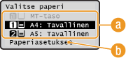 Käytä paperikasettiin lisätyn paperin koon ja tyypin määrittämiseen. Voit myös tallentaa paperiasetukset paperille, jota säännöllisesti asetat monitoimitasolle.