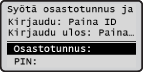 , ja jos allakuvattu kirjautumisikkuna avautuu, sinun on autentikoiduttava ennen kuin käytät faksi- tai skannaustoimintoa.