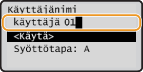 / -painikkeilla <Käyttäjänimi> ja paina . |