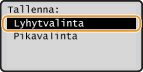 Jos valitsit <Pikavalinta> vaiheessa 5, avautuu ikkuna pikavalintanumeron määrittämiseksi. Valitse pikavalintapainikkeen numero ja paina