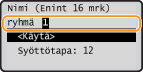 Syötä ryhmän nimi numeropainikkeilla, valitse <Käytä> ja paina