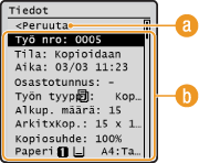 -painiketta. Voit myös peruuttaa kopioinnin sen jälkeen, kun olet tarkistanut kopioinnin tilan.