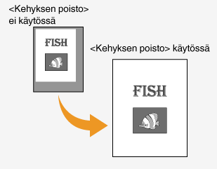 Kun kopioidaan asiakirjoja, jotka ovat pienempiä kuin tulostukseen käytetty paperi, kopioidun kuvaan ympärillä voi näkyä kehys. Kun kopioidaan sivuja paksusta kirjasta, reunat voivat olla tummia. <Kehyksen poisto> -toiminnolla voit poistaa nämä kehykset ja tummat reunat.
