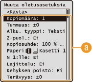 Valitse asetus, jonka haluat määrittää, ja muuta sen oletusarvo.