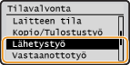 -painikkeilla <Lähetystyö> tai <Vastaanottotyö> ja paina