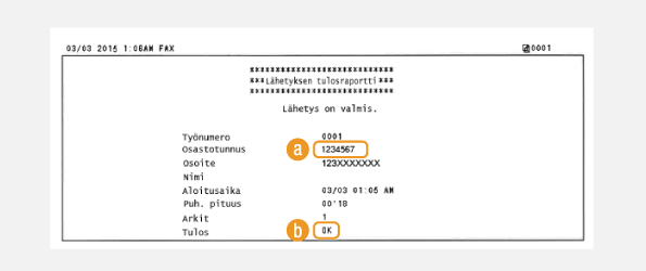 Faksilähetyksen tulosraportti (vain imageRUNNER 1435iF)