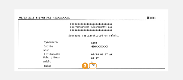 Vastaanoton tulosraportti (vain imageRUNNER 1435iF)