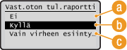 Valitse raportin tulostaminen vain, kun vastaanotossa ilmenee virhe