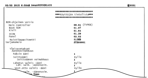 Tämä lista ei sisällä asetustietoja kohdista <Verkkoasetukset> ja <Järjestelmän hallinta-asetukset>. Tarkistaaksesi kaikki asetusnimikkeet, tulosta Järjestelmänvalvojan tietolista.