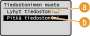Valitse, näytetäänkö USB-muistivälineessä olevien tiedostojen nimet lyhyenä vai pitkänä tekstinä.