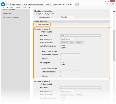 Valitse [Käytä SNMPv3:a] -valintaruutu.