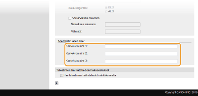 Määritä nämä asetukset vain, kun [Autentikointi Kyllä/Salaus Kyllä] tai [Autentikointi Kyllä/Salaus Ei] on valittu kohdassa [Suojausasetukset].