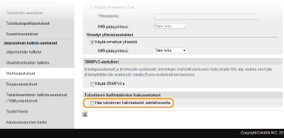 Käyttöpaneelin käyttäminenVoit ottaa SNMP-asetukset käyttöön tai poistaa ne käytöstä