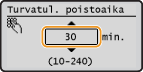 Ostohetkellä laite on asetettu poistamaan turvatulostusasiakirjat 30 minuuttia niiden vastaanottamisen jälkeen, jos niitä ei tulosteta, mutta voit muuttaa tämän asetuksen.