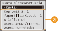 . Jos muutat nämä oletusasetukset vastaamaan useimmin tekemiäsi toimintoja, sinun ei tarvitse määrittää samoja asetuksia uudelleen joka kerran, kun tulostat.