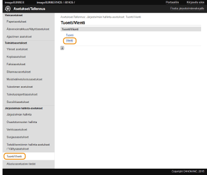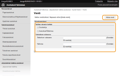 Määritä vietyjen asetustietojen tallennuspaikka näytön ohjeiden mukaisesti.