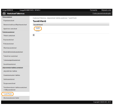 Jos valitsit [Asetukset/Tallennus] vaiheessa 4, laite uudelleenkäynnistyy automaattisesti kun data on tuotu.