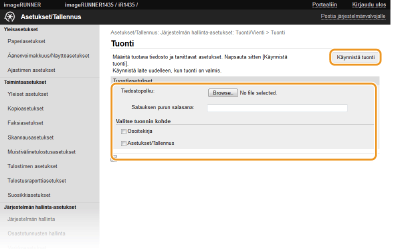 Valitse valintaruutu valikkovaihtoehtojen asetusdatan tuomiseksi.