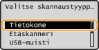 Valitse vastaanottaja tai skannauksen tyyppi ja paina