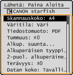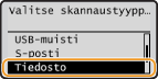 Jos <Lähetä itselle> on näkyvissä, voit valita tämän nimikkeen ja lähettää tiedoston sinulle nimettyyn kansioon. Lisätietoja asetuksista tiedostojen lähettämisestä nimettyihin kansioihin, katso